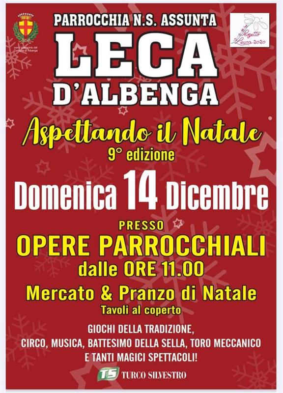 Domenica 14 Dicembre presso Opere parrocchiali di Leca, dalle ore 11, mercato e pranzo di Natale con giochi della tradizione, circo, musica, battesimo della sella, toro meccanico e tanti magici spettacoli.